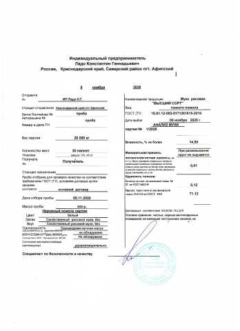 Мука рисовая высший сорт - безглютеновая, что подтверждено протоколом испытаний.
