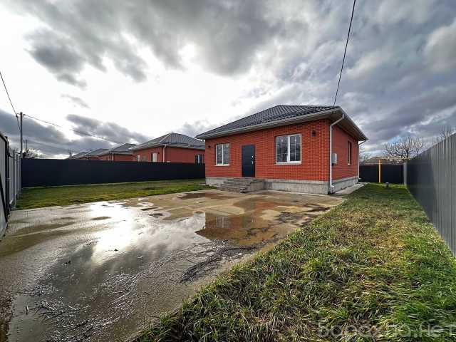 Продаю 1-эт. новый дом в с. Красносельское, ул. Горького, 86/ 36/ 22, кирпич. 2024 года постройки. Предчистовая отделка, можем сделать ремонт под вас, отопление, тёплые полы. 3 комнаты, 2 санузла, котельная, коридор, прихожая, просторная кухня-гостиная 30 кв.м. с выходом на участок. Металлопластиковые окна, крыша металлочерепица, металлическая дверь. Двор на 2 авто, отмоска, забетонированы. Земельный участок 4.6 сотки, ИЖС, 2 входа/ выхода. Газ по границе, эл-во 3 фазы 15 кВт, вода скважина, интернет оптоволокно по меже, септик. Все фото соответствуют. Недалеко школа, дет. сад, магазины, парк, церковь, стадион, остановка общественного транспорта. Тихое спокойное место. До г. Краснодар 15 минут на авто, 20 км. Рядом протекает широкая р. Кочеты, где можно отлично порыбачить и отдохнуть. Ипотека с господдержкой, сельская, материнский капитал, рассмотрим.